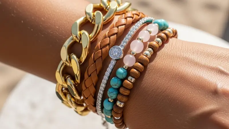 Modern bracelet stacks mix materials instead of matching them perfectly. This approach creates depth and visual interest.