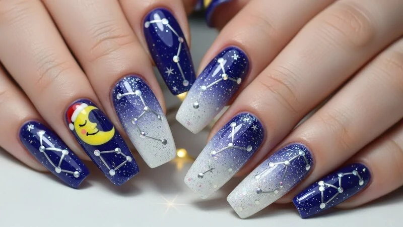 Experiment with playful designs like stars, hearts, and pastel winter shades. Press-on winter nails also work well for quick changes.